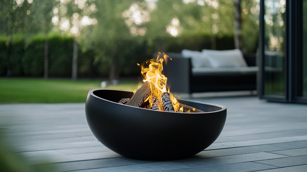Arrange outdoor seating in a half-circle facing the fire. Scatter flame-resistant decorative stones or colored glass around the pit’s exterior. Stack firewood neatly off to one side. Lastly, set out s’mores supplies and blankets so guests can cozy up around the glow. Check our blog for more fire pit design ideas.